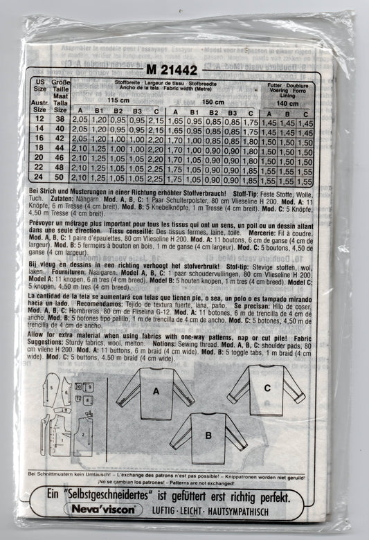 Patrón de costura vintage de los años 80 para chaquetas de mujer Neue Mode M 21442 con ribete en contraste, talla 12-24, sin cortar, doblado de fábrica