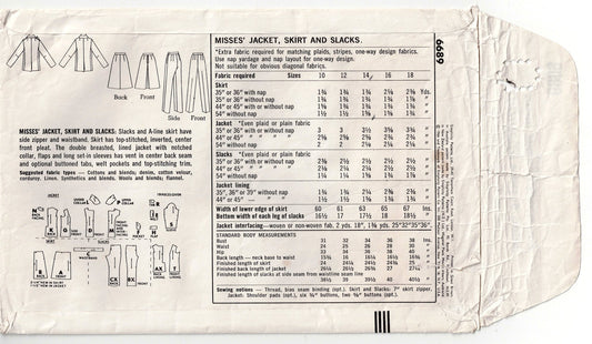 Simplicity 6689 Womens Jacket Skirt & Pants 1960s Vintage Sewing Pattern Size 14 Bust 34 inches