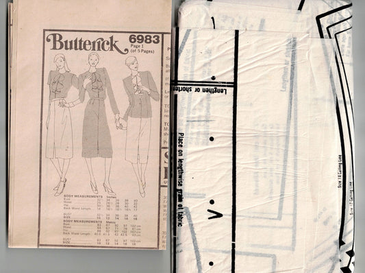 Patrón de costura vintage de los años 80 para blusa y falda con volados de Butterick 6983 para mujer, talla 10-14