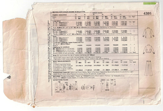 McCall's 4386 Mens Bomber Jacket Shirt & Pants 1970s Vintage Sewing Pattern Chest 40 inches