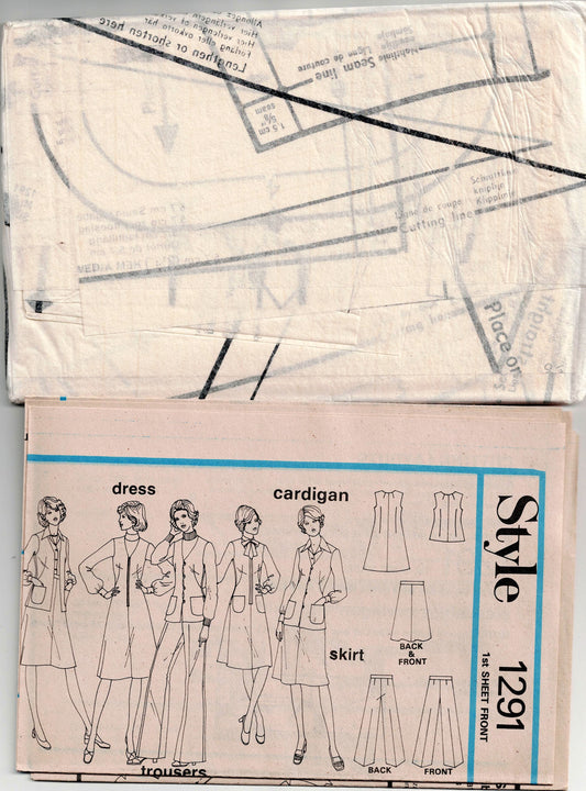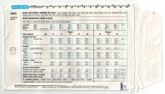 Style 4663 Womens Panelled Dress & Lined Cardigan Jacket 1970s Vintage Sewing Pattern Bust 44 inches