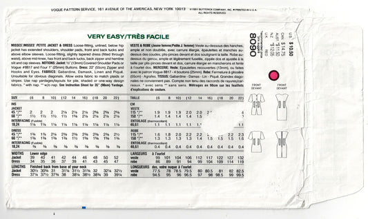 Vogue 8090 Womens Tucked Sheath Dress & Jacket 1990s Vintage Sewing Pattern Size 6 - 10 UNCUT Factory Folded