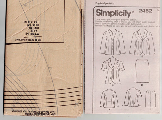 Simplicity 2452 THREADS Collection Womens Jackets & Skirts Out Of Print Sewing Pattern Size 14 - 22 UNCUT Factory Folded