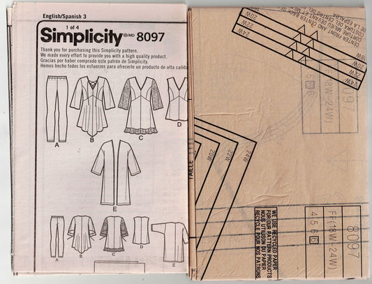 Simplicity 8097 Womens Kimono Jacket Top & Leggings Out Of Print Sewing Pattern Sizes 18W - 24W UNCUT Factory Folded