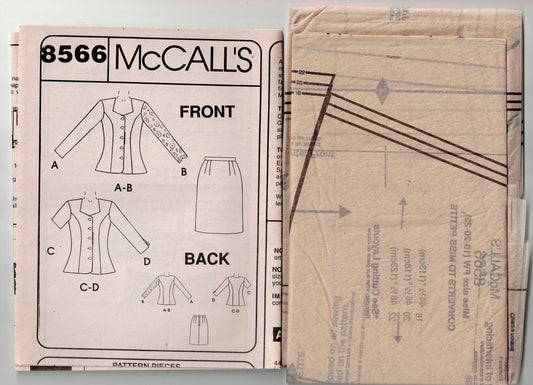 McCall's 8566 Womens Princess Jacket & Skirt 1990s Vintage Sewing Pattern Sizes 18 - 22 UNCUT Factory Folded