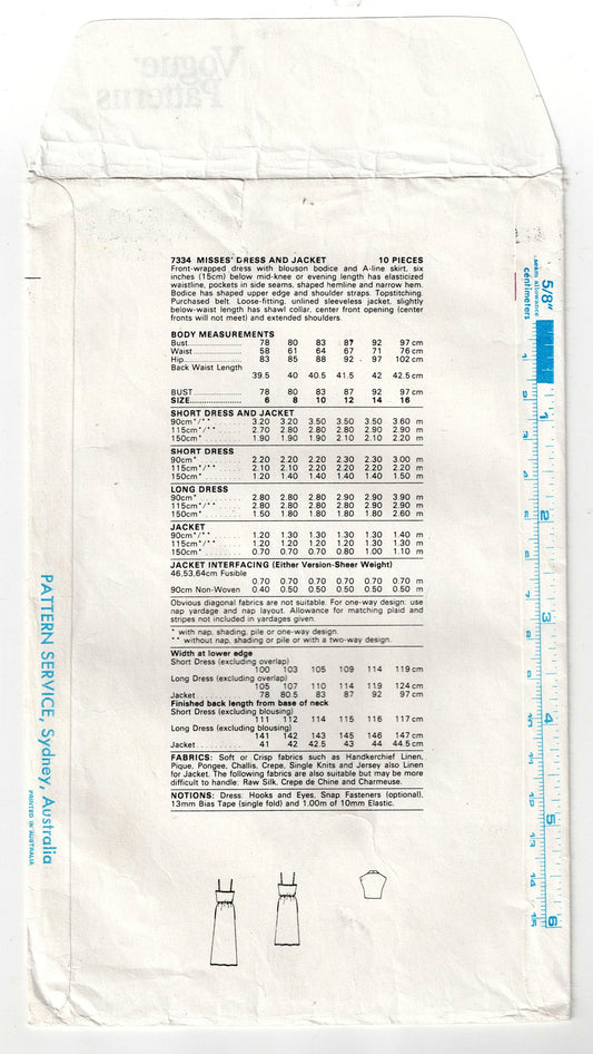 Vogue 7334 Womens Wrap Bodice Slip Dress & Bolero Jacket 1970s Vintage Sewing Pattern Size 10 Bust 32.5 inches UNCUT Factory Folded