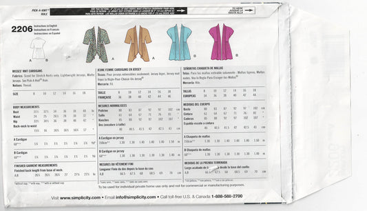 Patrón de costura de chaqueta tipo cárdigan de punto elástico fácil de usar para mujer Simplicity 2206, agotado, talla 8-18, sin cortar, doblado de fábrica