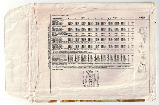 McCall's 4965 MARLO'S CORNER Womens Jacket Skirt & Pants 1970s Vintage Sewing Pattern Bust 42 inches