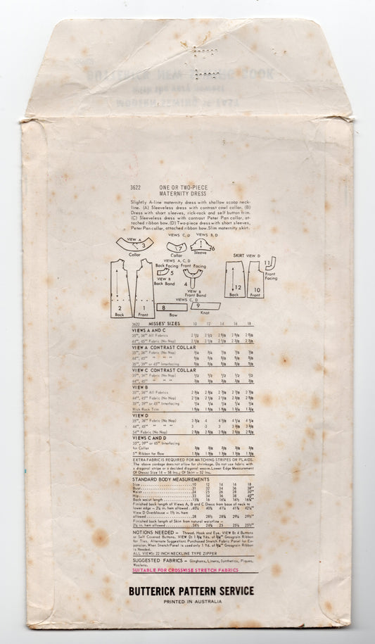 Patrón de costura vintage de los años 60 para vestido de maternidad Butterick 3622, top y falda, talla 14, busto 34 pulgadas