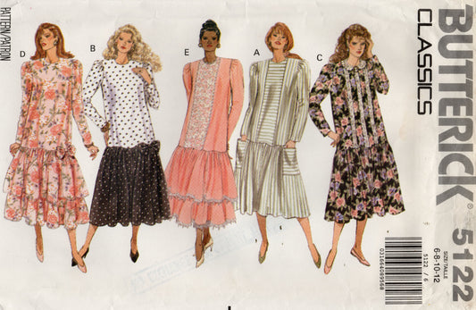 Patrón de costura vintage de los años 90 para vestido de maternidad con cintura caída Butterick 5122 para mujer, talla 6 a 12