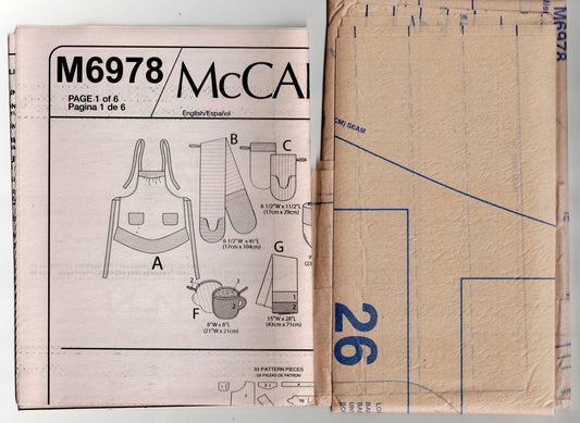 McCall's 6978 Womens Kitchen Accessories & Apron Oven Mitt & Pot Holders Out Of Print Sewing Pattern Size S/M/L UNCUT Factory Folded