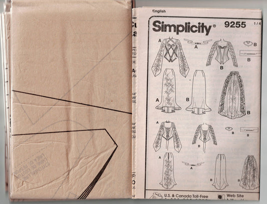 Simplicity 9255 Womens Costume Renaissance Medieval Corset Top & Skirt Out Of Print Sewing Pattern Size 14 - 22 UNCUT Factory Folded
