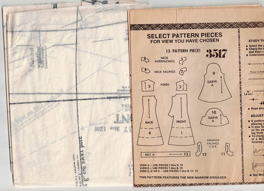 McCall's 3517 Womens Dress or Tennis Dress 1970s Vintage Sewing Pattern Size 12 Bust 34 Inches