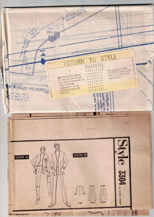 Style 3304 RARE Mens Cardigan Jacket & Trousers 1970s Vintage Sewing Pattern Chest 36 inches UNCUT Factory Folded