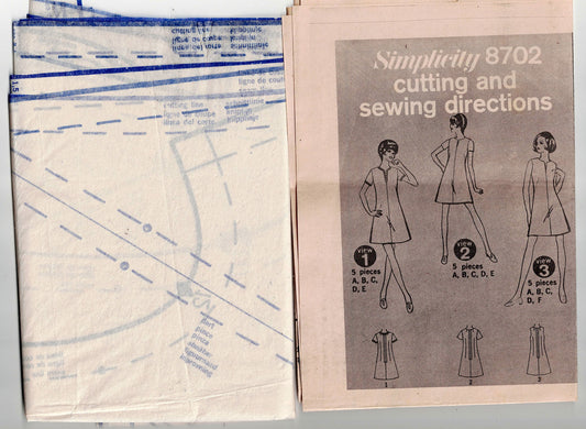 Simplicity 8702 Womens JIFFY Half Sized Shift Dress 1970s Vintage Sewing Pattern Size 14 1/2 Bust 37 inches