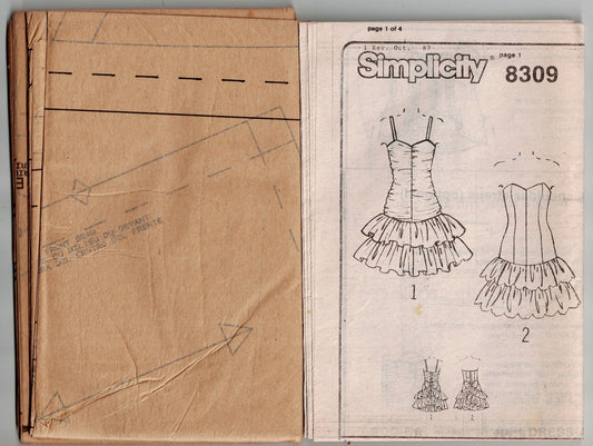 Simplicity 8309 Womens Evening Strapless Ruched Tiered Ruffled Hem Dress 1980s Vintage Sewing Pattern Size 12 Bust 34 Inches UNCUT Factory Folded