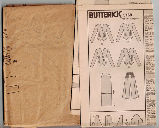 Butterick 5169 Womens Vest Front Top Slim Skirt & Culottes 1990s Vintage Sewing Pattern Size 6 - 12 UNCUT Factory Folded