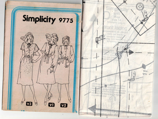 Simplicity 9775 Womens Puff Sleeved Dress with Peter Pan Collar 1980s Vintage Sewing Pattern Size 14 Bust 36 inches UNCUT Factory Folded