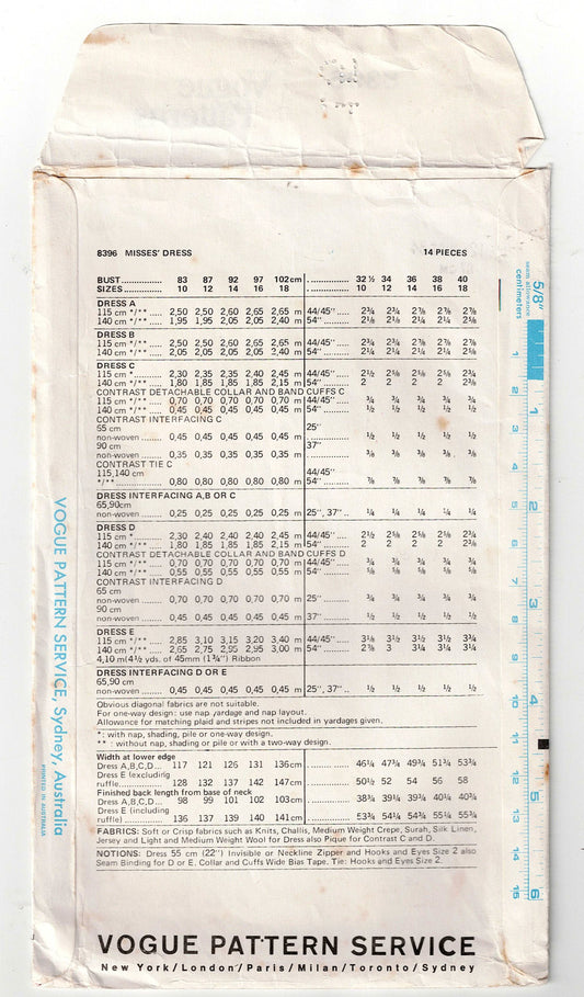 Very Easy Vogue 8396 Womens A Line Dress with Sleeve & Neckline Variations 1970s Vintage Sewing Pattern Size 12 Bust 34 Inches