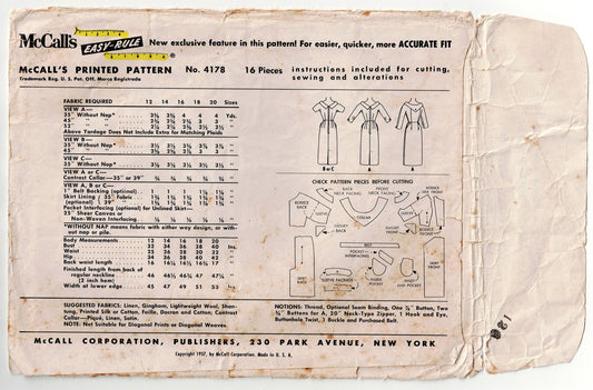 McCall's 4178 Womens Sheath Dress with Contrast Collar 1950s Vintage Sewing Pattern Size 18 Bust 38 inches