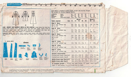 Style 3405 Womens High Waisted Maxi Dress 1970s Vintage Sewing Pattern Size 18 Bust 40 inches