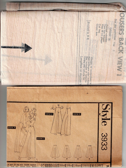 Style 3933 Womens Wide Leg Pants in 4 Styles 1970s Vintage Sewing Pattern Size 10 UNCUT Factory Folded