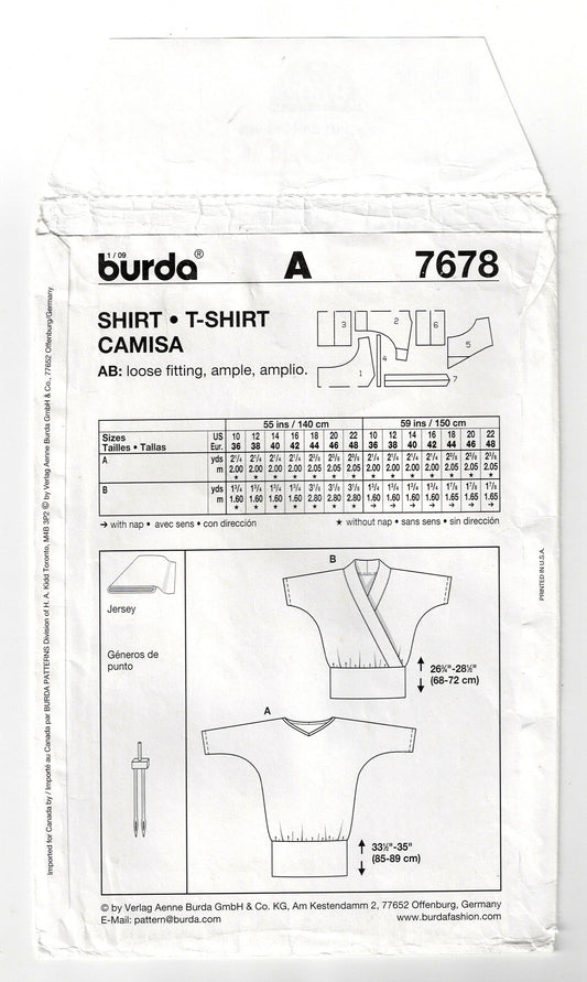 Burda Young 7678 Womens Stretch Knit Tops Out Of Print Sewing Pattern Sizes 10 - 22 UNCUT Factory Folded