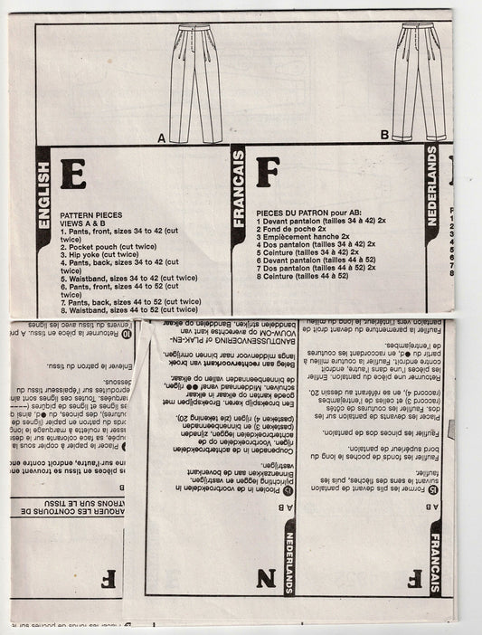 Burda Studio 4852 Womens Pleated Tapered Pants with Pockets 1980s Vintage Sewing Pattern Sizes 8 - 26 UNCUT Factory Folded