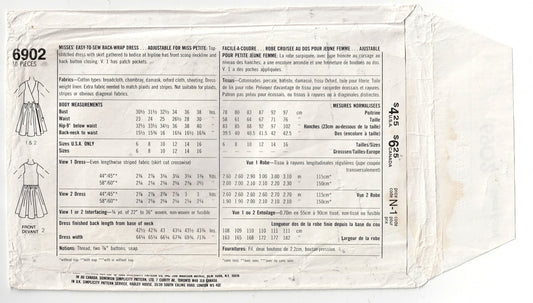 Simplicity 6902 Womens Drop Waisted Back Wrap Sundress 1980s Vintage Sewing Pattern Size 10 - 14 UNCUT Factory Folded