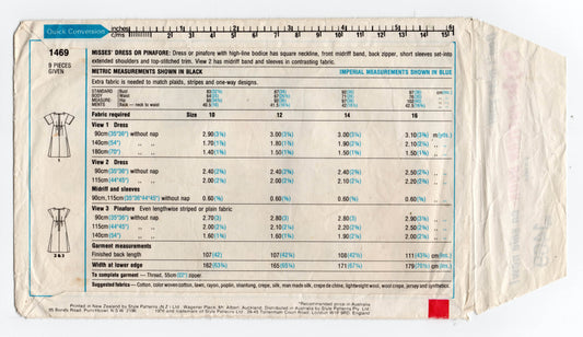 Patrón de costura vintage de los años 70, estilo 1469, para vestido de mujer con cintura alta y banda en el abdomen, talla 12, busto de 34 pulgadas