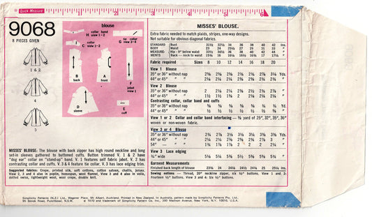 Simplicity 9068 Womens Dog Eared Collar Blouse 1970s Vintage Sewing Pattern Size 12 Bust 34 Inches