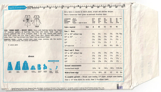 Style 4485 Womens High Waisted Mini Dress with Ruched Sleeves 1970s Vintage Sewing Pattern Size 10 Bust 32.5 Inches