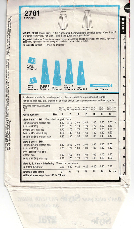 Style 2781 Womens Yoked Skirts 1980s Vintage Sewing Pattern Size 16 Waist 30 Inches