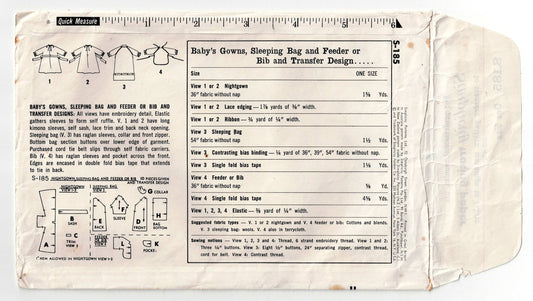 Patrón de costura vintage de los años 60, talla única, para bautizo de bebé, saco de dormir, babero y transferencias de bordados, Simplicity s.185