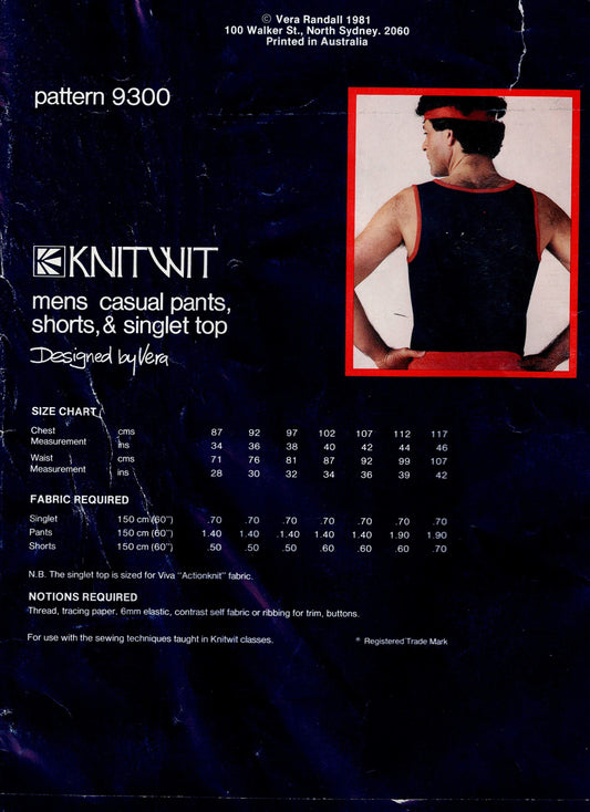 Knitwit 9300 Mens RETRO Stretch Knit Pants Shorts & Singlet Top 1980s Vintage Sewing Pattern Size 34 - 46 UNCUT Factory Folded