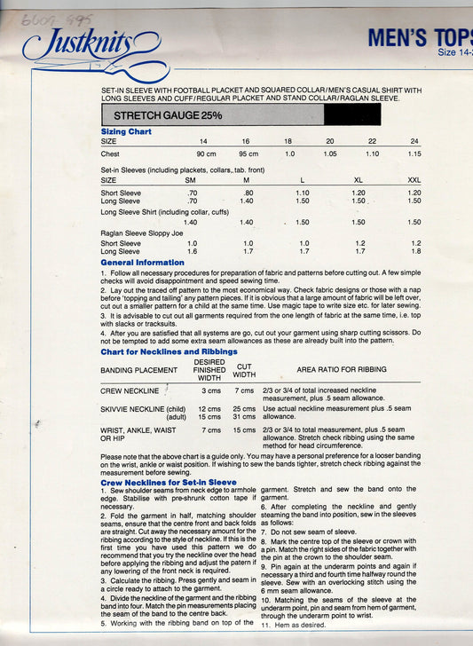 Justknits Mens & Teen Boys Stretch Knit T Shirts & Collared Polo Shirts 1980s Vintage Sewing Pattern Size S - XXL UNCUT Factory Folded