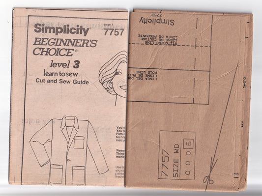 Simplicity 7757 Mens Womens Unisex Loose Fitting Unlined Jacket 1980s Vintage Paper Sewing Pattern Size MED UNCUT Factory Folded