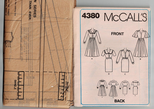 McCall's 4380 Womens EASY Elastic Waist Dress with Optional Collar 1980s Vintage Sewing Pattern Size 14 - 18 UNCUT Factory Folded