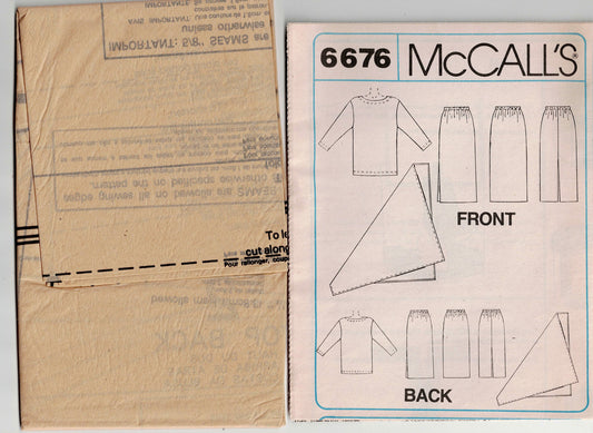McCall's 6676 Womens Loose Fitting Stretch Knit Casual Top Skirt & Shawl 1990s Vintage Sewing Pattern Size XS - MED UNCUT Factory Folded