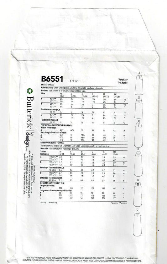 Butterick 6551 Womens EASY Pullover Sundress Sewing Pattern Size XS - XXL UNCUT Factory Folded
