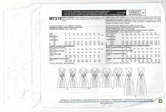 McCall's 7319 Womens Stretch Knit Dress with Crossover Bodice Out Of Print Sewing Pattern Size 14 - 22 UNCUT Factory Folded