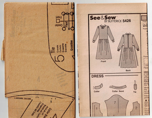 Butterick See & Sew 5426 Womens Drop Waisted Puff Sleeved Dress 1980s Vintage Sewing Pattern Size 12 - 16 UNCUT Factory Folded