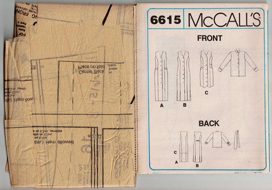 McCall's 6615 Womens Fitted Panelled Dress Shirt & Tie 1990s Vintage Sewing Pattern Size 8 - 12 UNCUT Factory Folded