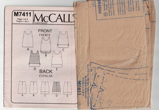McCall's 7411 Womens EASY Pullover Sleeveless Tops Out Of Print Sewing Pattern Sizes L - XXL UNCUT Factory Folded