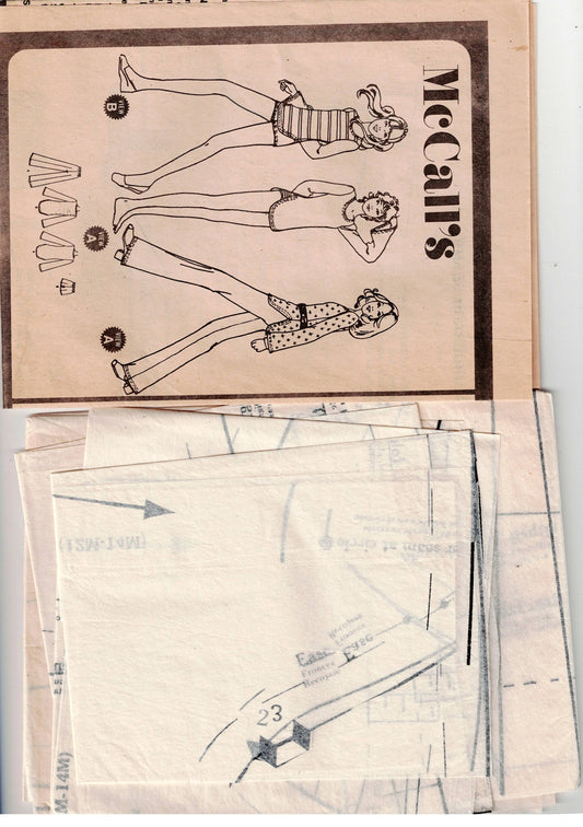 McCall's 3135 Womens Stretch Knit Tops Shorts & Pants 1970s Vintage Sewing Pattern Bust 34 - 36 inches