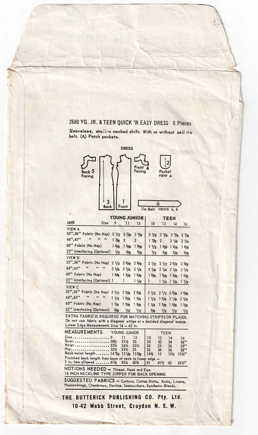 Patrón de costura Butterick 2680 para vestido recto clásico fácil y rápido para mujer, años 60, talla 14, busto 34 pulgadas
