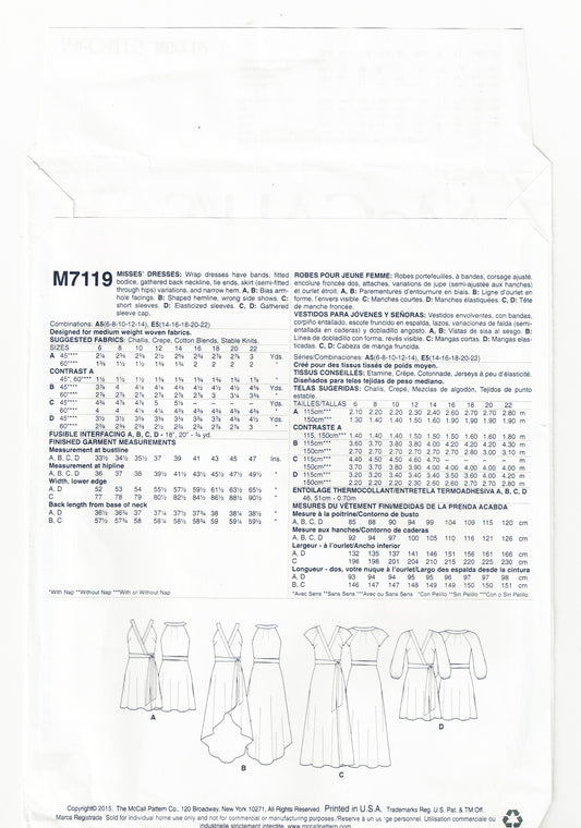 McCall's 7119 EASY Womens Summer Wrap Dress Out Of Print Sewing Pattern Sizes 6 - 14 UNCUT Factory Folded