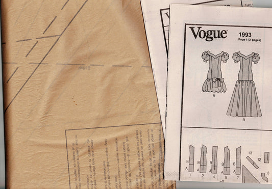 Vogue Paris Original 1993 GIVENCHY Womens Gig Sleeved Evening Gown with Skirt Variations 1980s Vintage Sewing Pattern Size 12 Bust 34 inches UNCUT Factory Folded