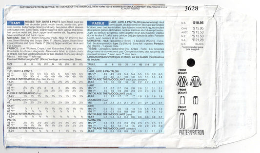 Butterick 3628 NOVIELLO BLOOM Womens Asymmetric Top Skirt & Pants 1990s Vintage Sewing Pattern Size 12 - 16 UNCUT Factory Folded