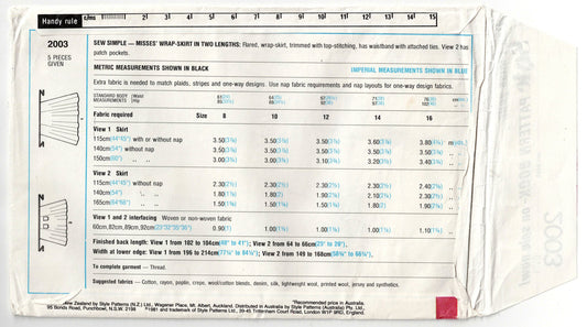 Style 2003 Womens EASY Flared Wrap Skirt in 2 Lengths 1970s Vintage Sewing Pattern Size 14 UNCUT Factory Folded